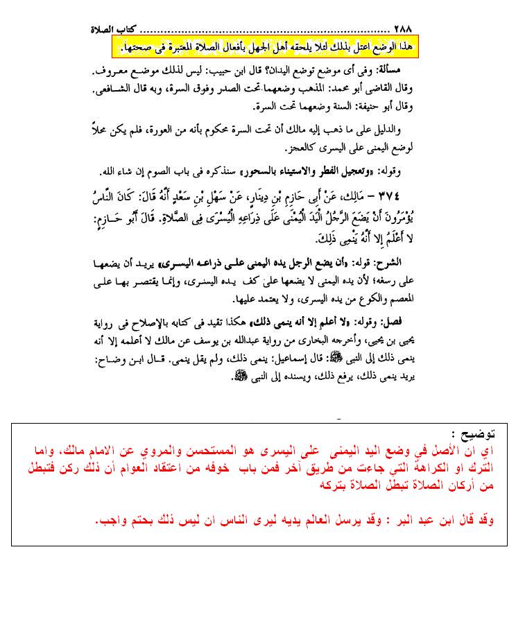 مذهب مالك الصحيح هو القبض أي وضع اليد اليمنى على اليسرى في الصلاة ملتقى أهل الحديث