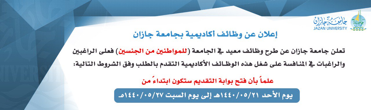 وظائف أكاديمية شاغرة في جامعة جازان تعر ف على الشروط صحيفة تواصل الالكترونية
