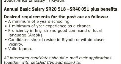 Vacancy Cleaner Riyp 2012 South African Embassy In Riyadh Job In Ksa 29 01 2017 Visa Not There Connecting People